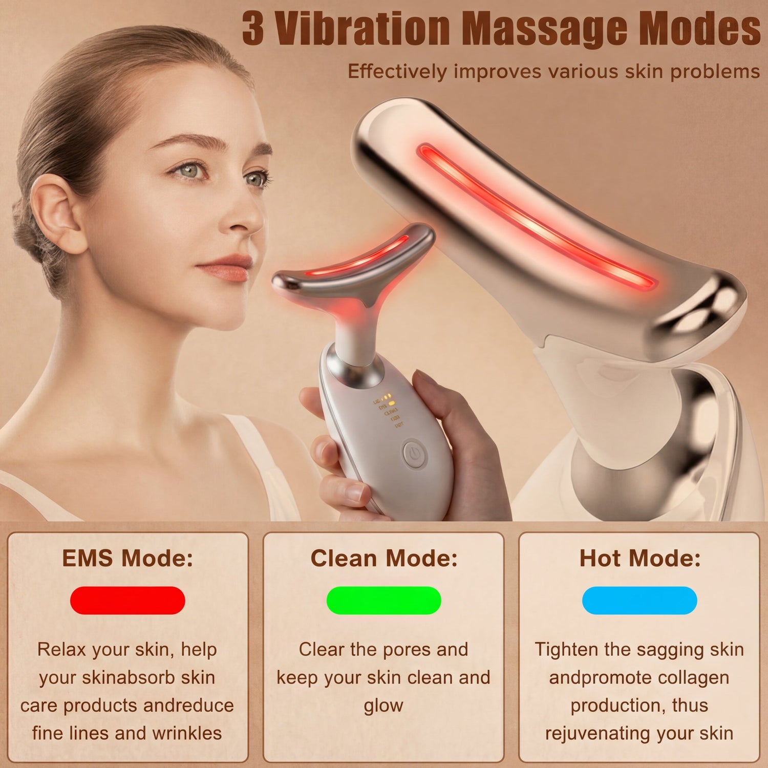 Enhance your skincare routine with targeted facial massage and multi-color LED light therapy designed to support healthier-looking, more radiant skin at home.